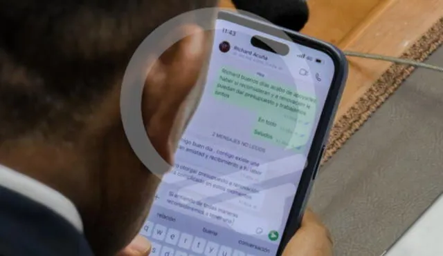 “Richard, buenos días. Acabo de apoyarles”, se lee en la primera parte del mensaje. “A ver si reconsideran y a Renovación (Popular) le pueden dar Presupuesto y trabajamos juntos”, concluye Medina Minaya, informándole a Richard Acuña sobre su voto.